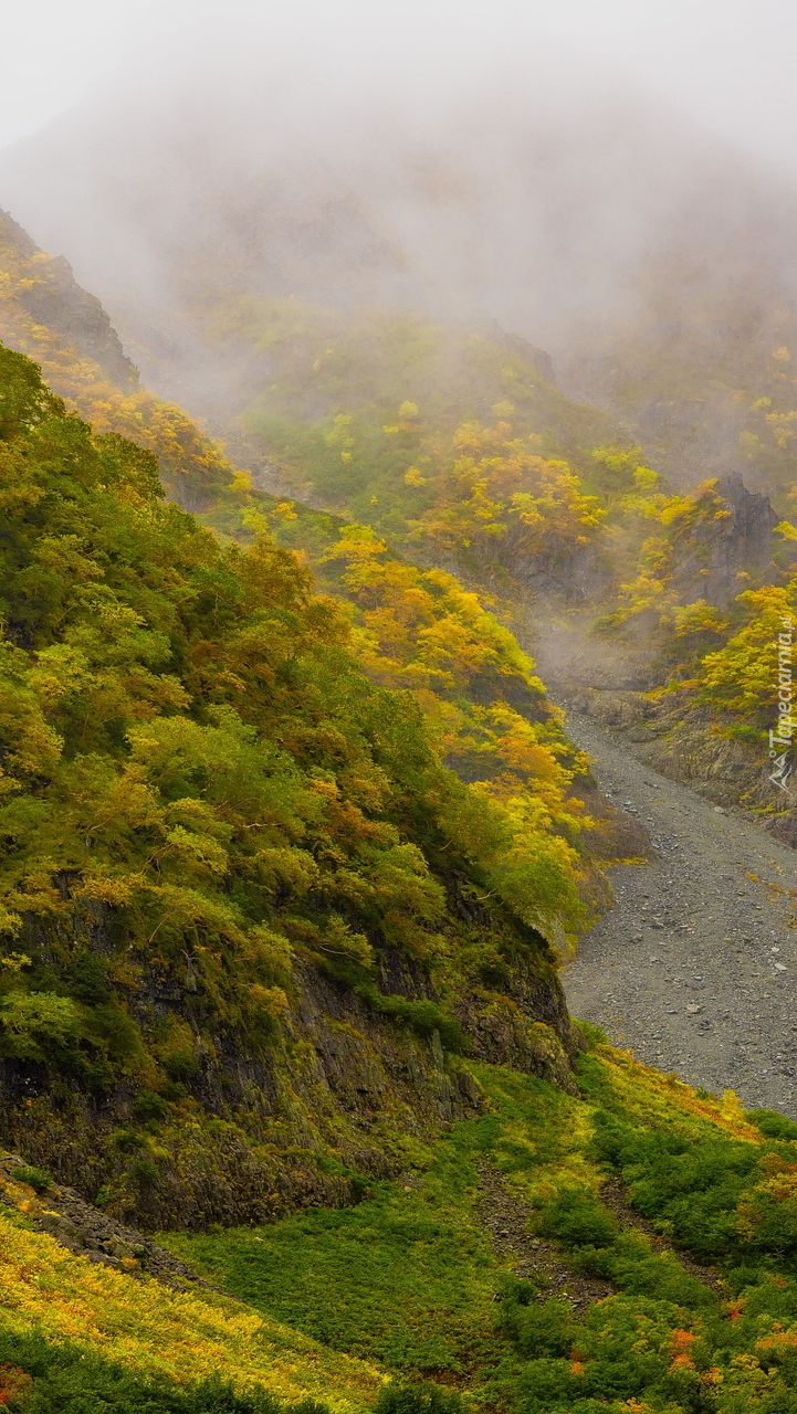 Edytor tapety: Mgła nad zalesionymi wzgórzami