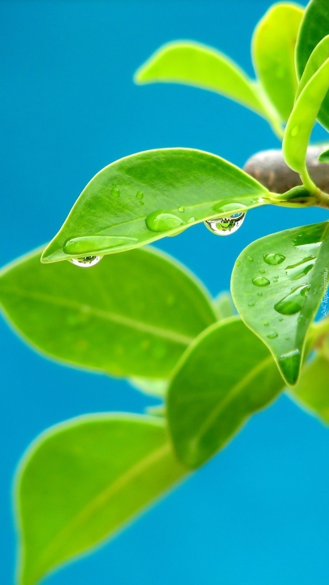 Edytor tapety: Krople wody na liściach