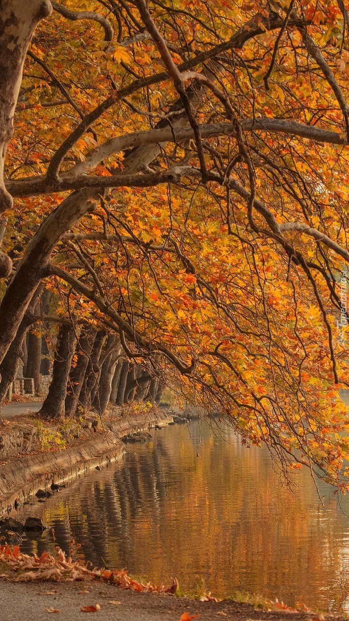 Edytor tapety: Jesienne drzewa nad stawem