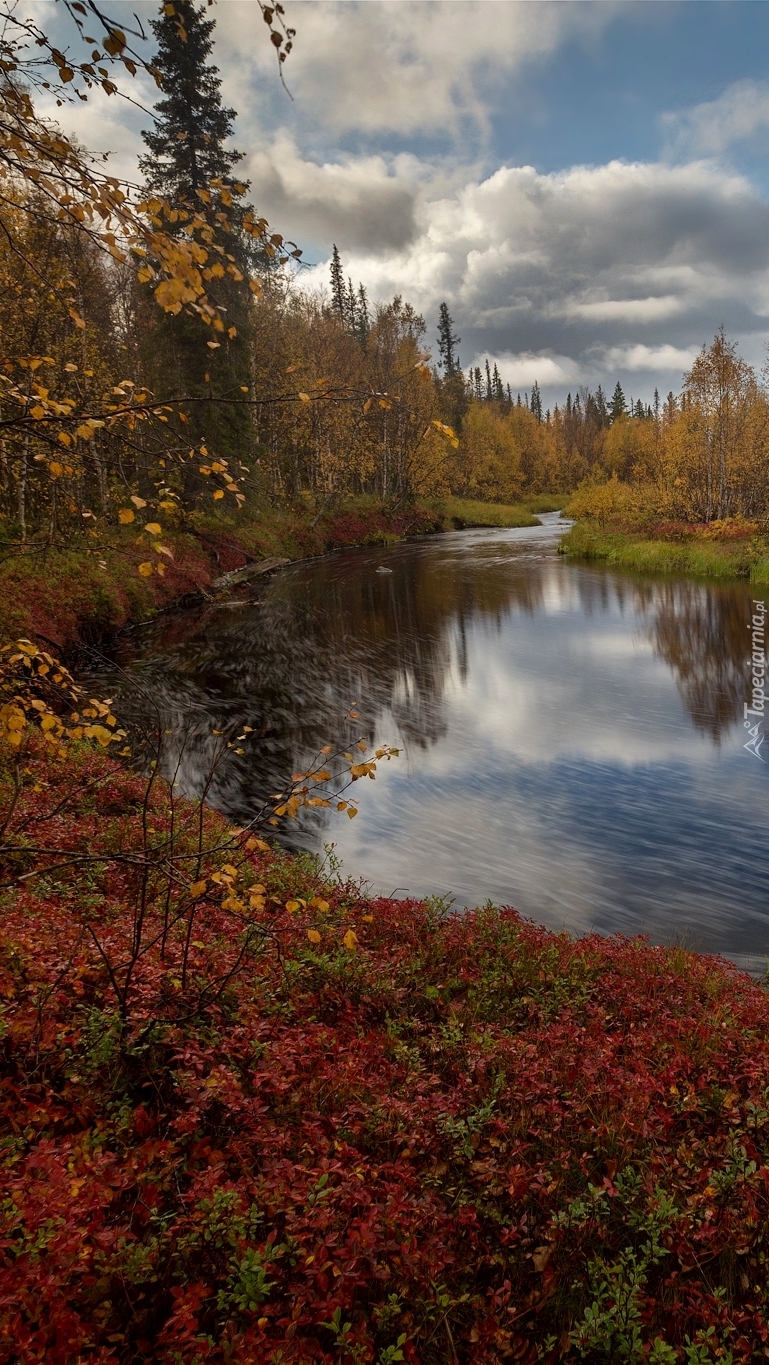 Edytor tapety: Jesienne drzewa i krzewy nad rzeką