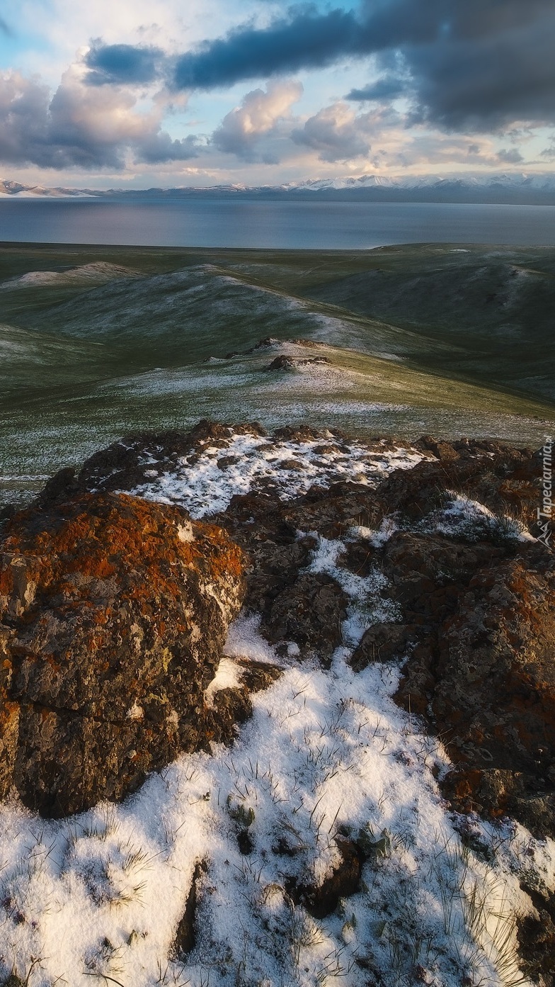 Edytor tapety: Pierwszy śnieg na wzgórzach i skałach