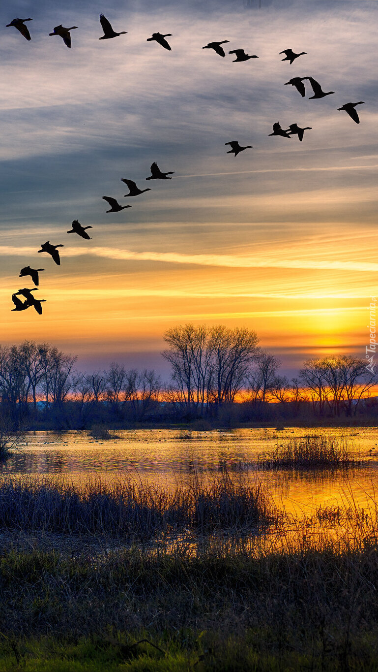 Edytor tapety: Dzikie gęsi nad jeziorem