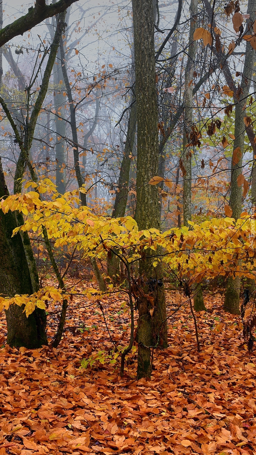 Edytor tapety: Pożółkłe liście wokół drzew