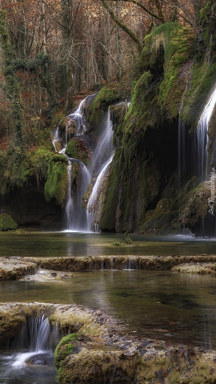 Edytor tapety: Wodospad Cascade des tufs w lesie