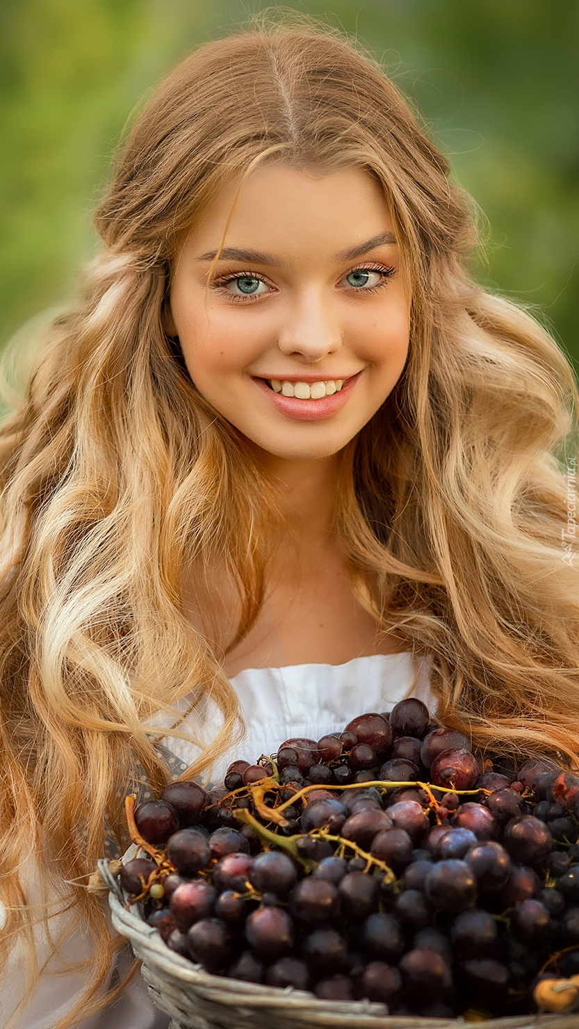 Edytor tapety: Dziewczyna z koszem winogron