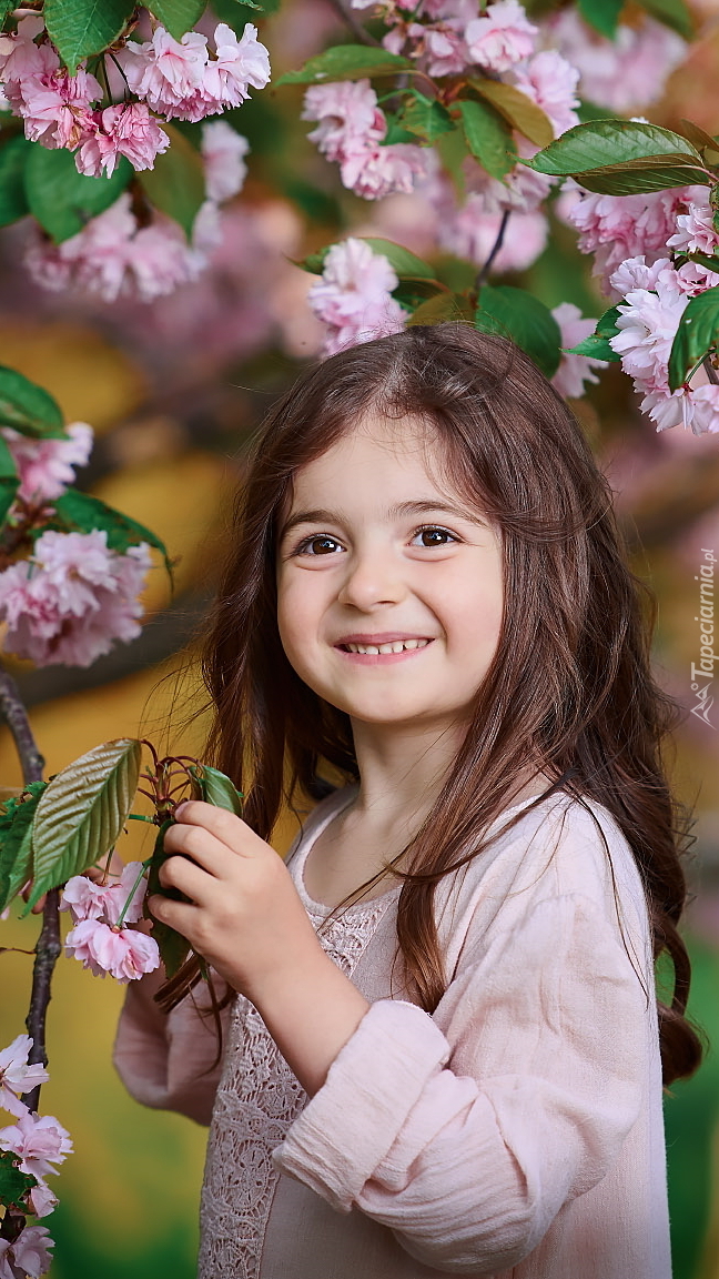 Edytor tapety: Dziewczynka pod kwitnącym drzewem
