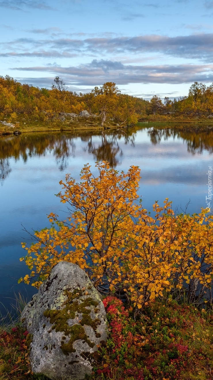 Edytor tapety: Jesienne krzewy nad jeziorem