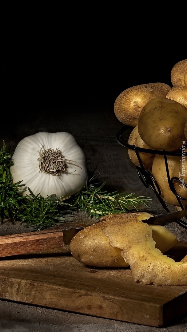 Edytor tapety: Czosnek obok ziemniaków