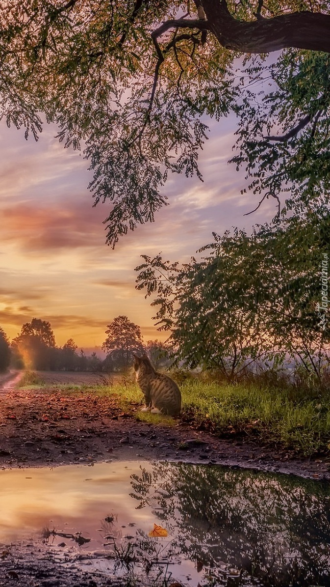 Edytor tapety: Kot obok kałuży pod drzewem