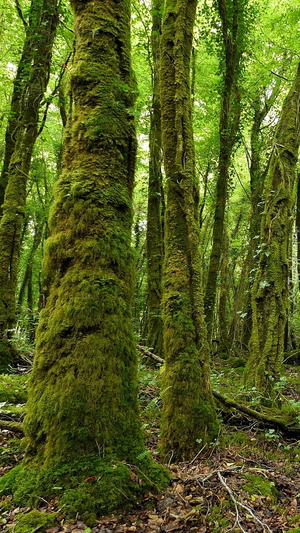 Edytor tapety: Omszałe pnie drzew w lesie