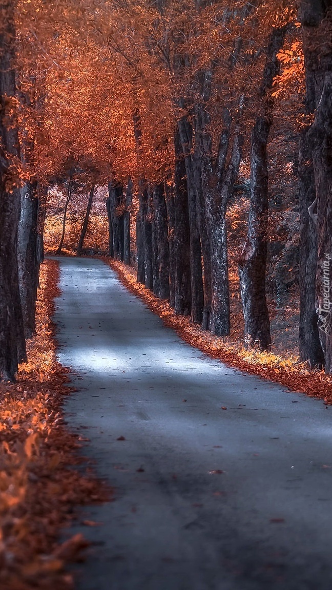 Edytor tapety: Szpalery jesiennych drzew przy drodze