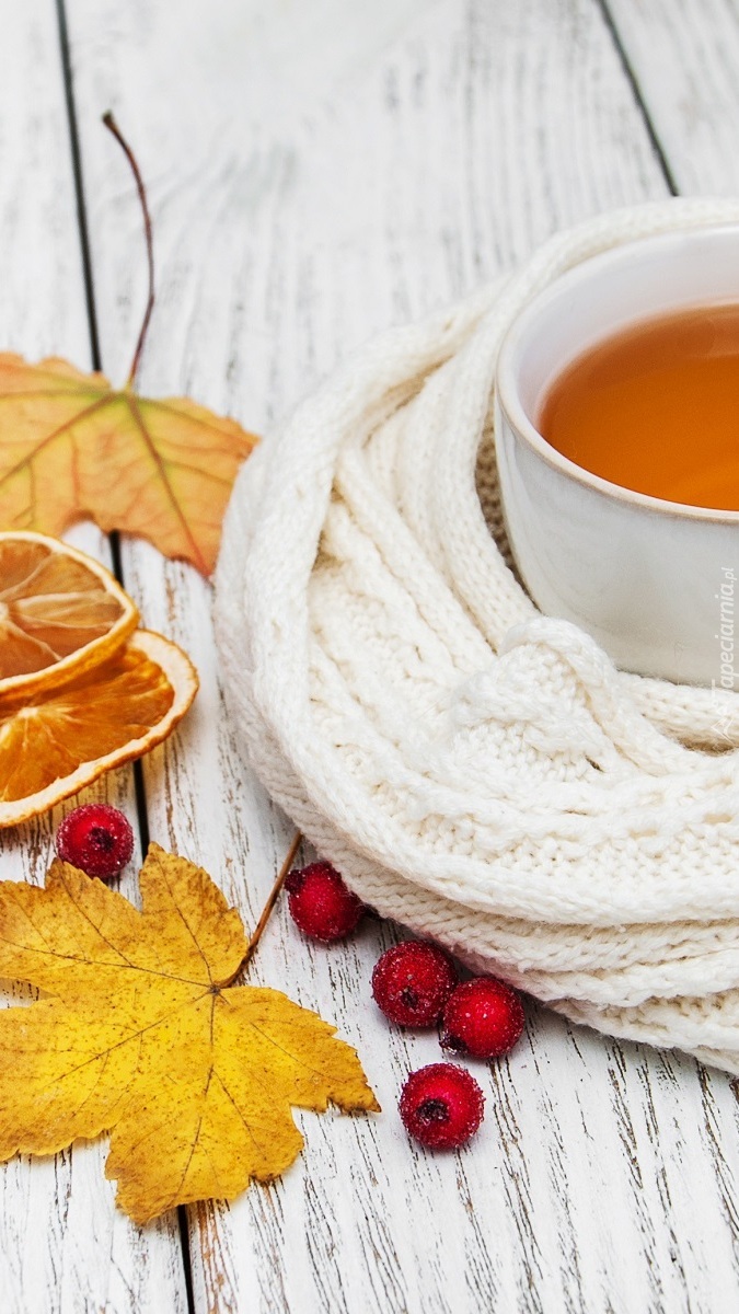Edytor tapety: Filiżanka herbaty owinięta szalem