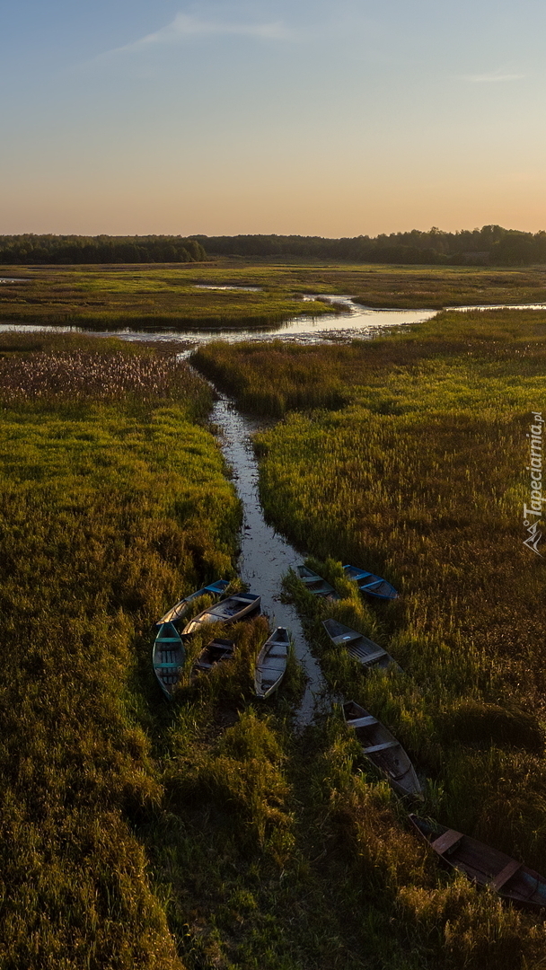 Edytor tapety: Łódki wśród traw na brzegu rzeki