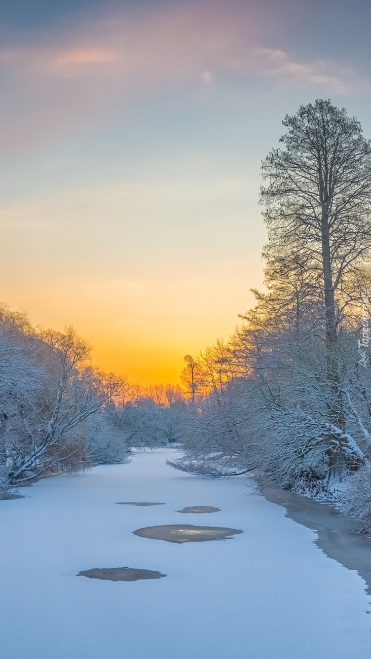 Edytor tapety: Zimowy wchód słońca nad zamarzniętą rzeką