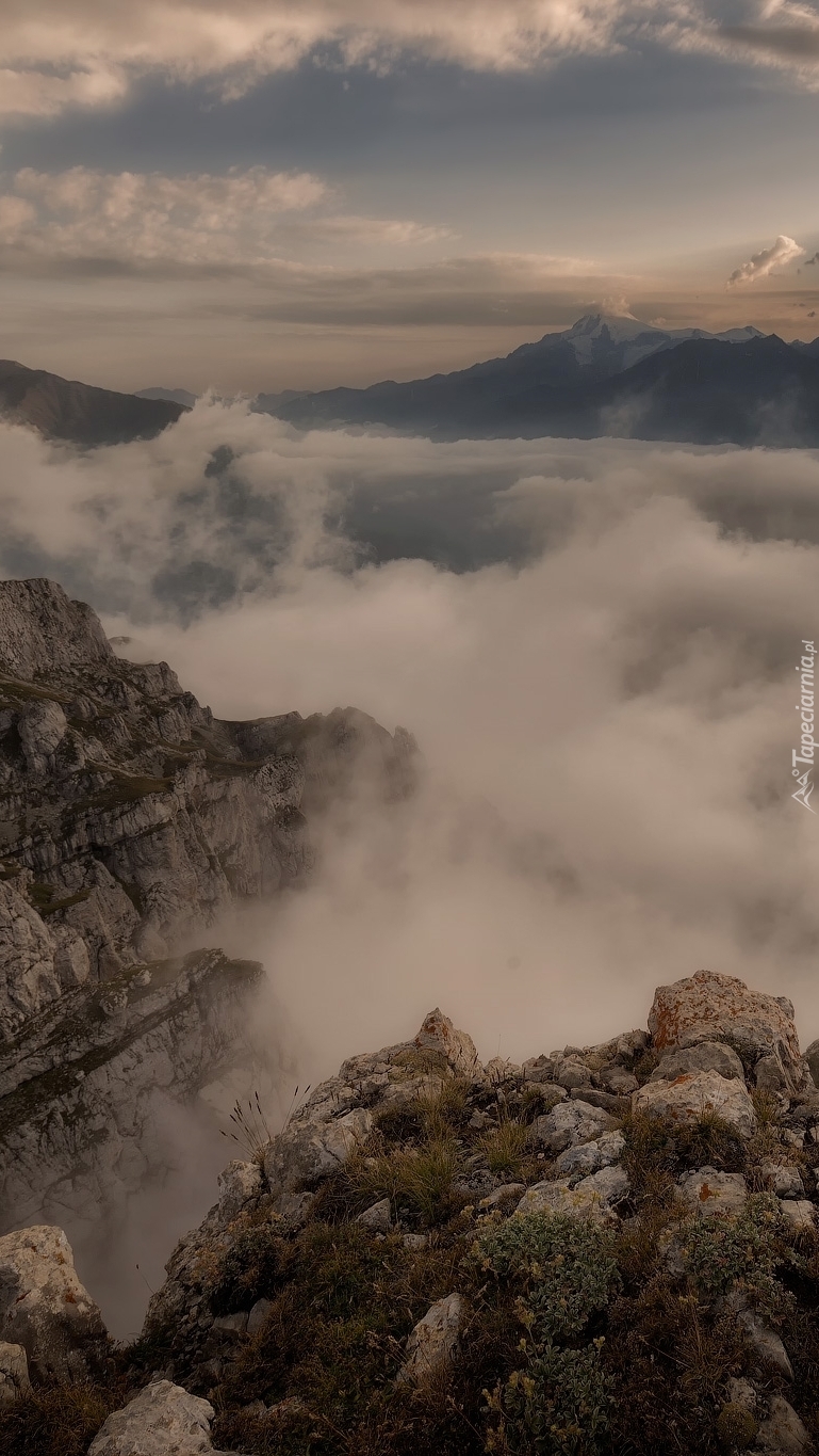 Edytor tapety: Chmury i mgła nad górami