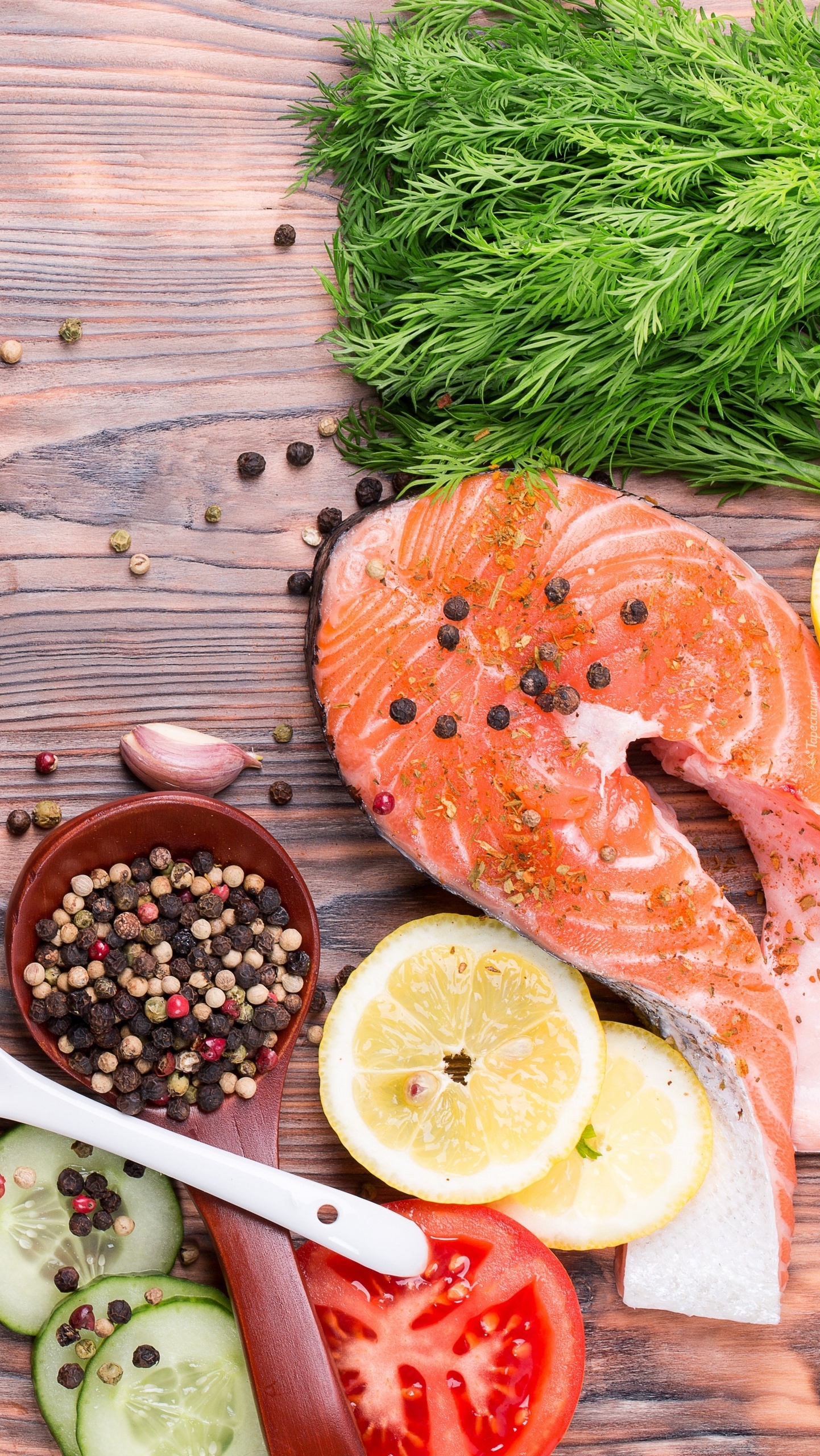 Edytor tapety: Łosoś obok warzyw