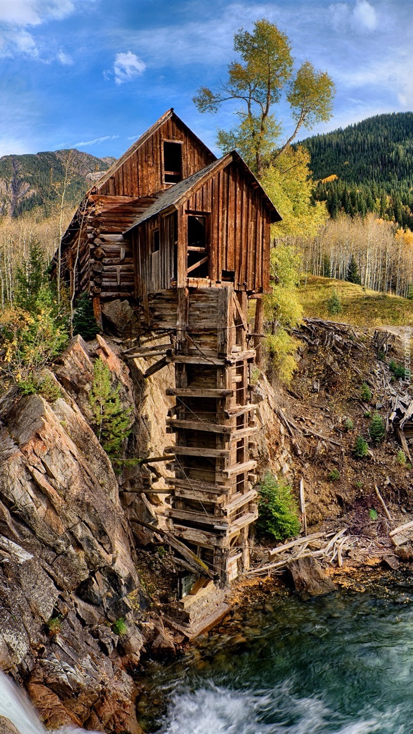 Edytor tapety: Młyn Crystal Mill na skałach