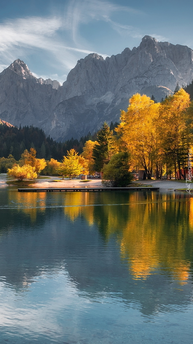 Edytor tapety: Jesienne drzewa nad jeziorem Lake Jasna