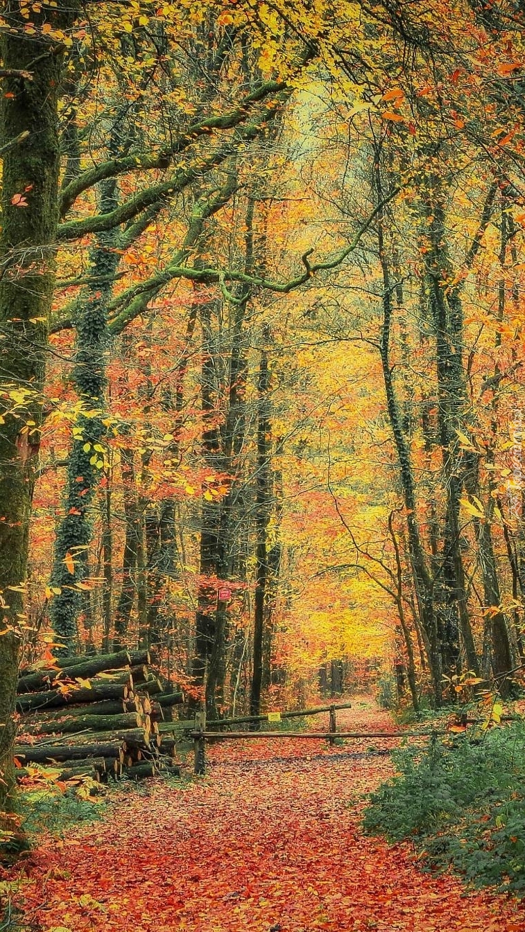 Edytor tapety: Leśna ścieżka z opadłymi liśćmi