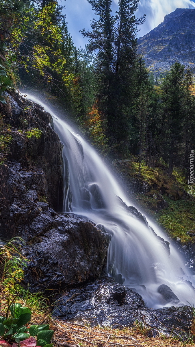 Edytor tapety: Wodospad na skałach
