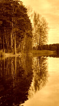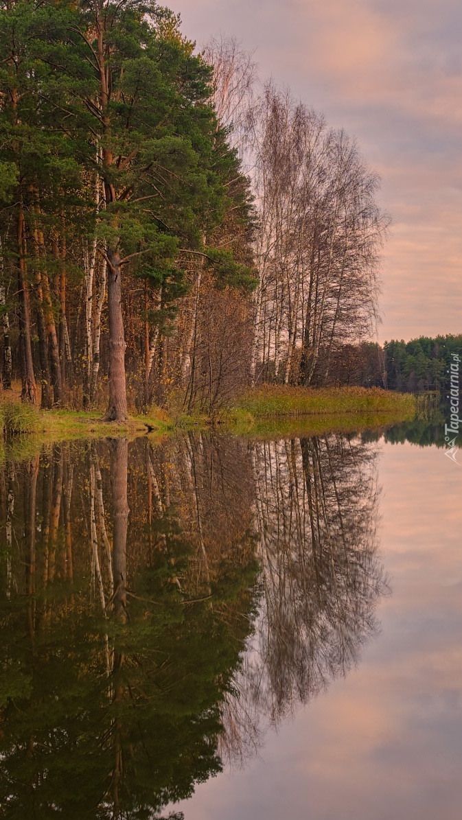 Edytor tapety: Brzozy nad brzegiem jeziora