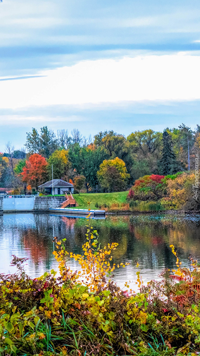 Edytor tapety: Kolorowe krzewy nad rzeką
