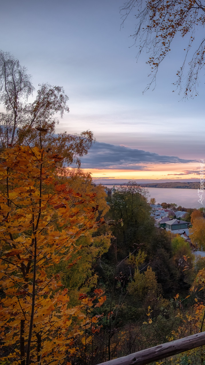 Edytor tapety: Drzewa na wzgórzu nad miastem Plos