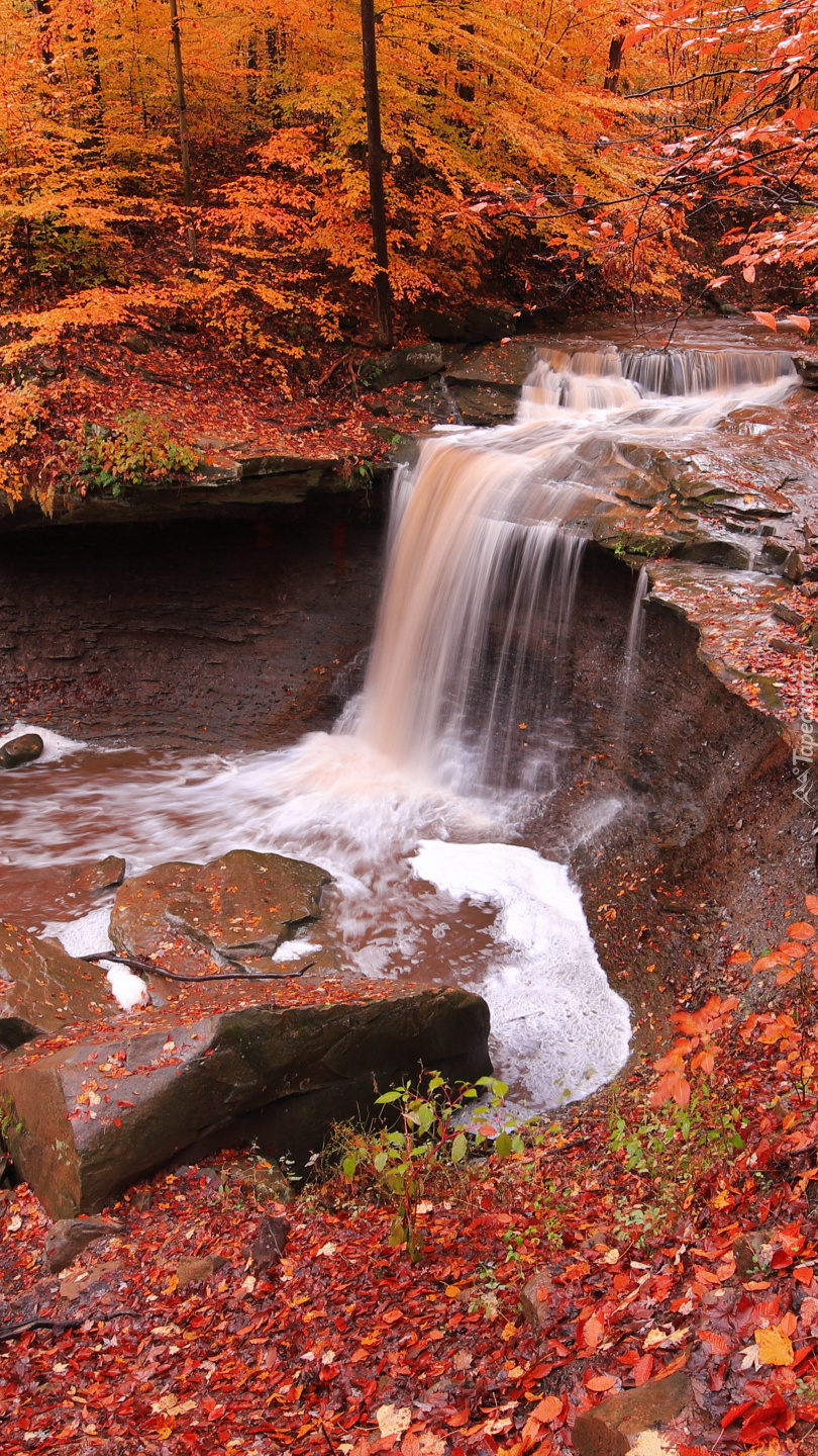 Edytor tapety: Wodospad w jesiennym lesie