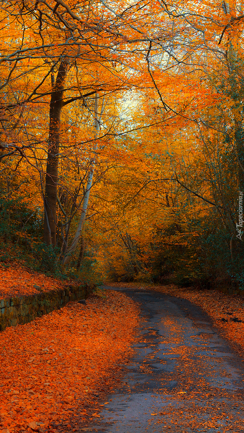 Edytor tapety: Pomarańczowe liście na drodze