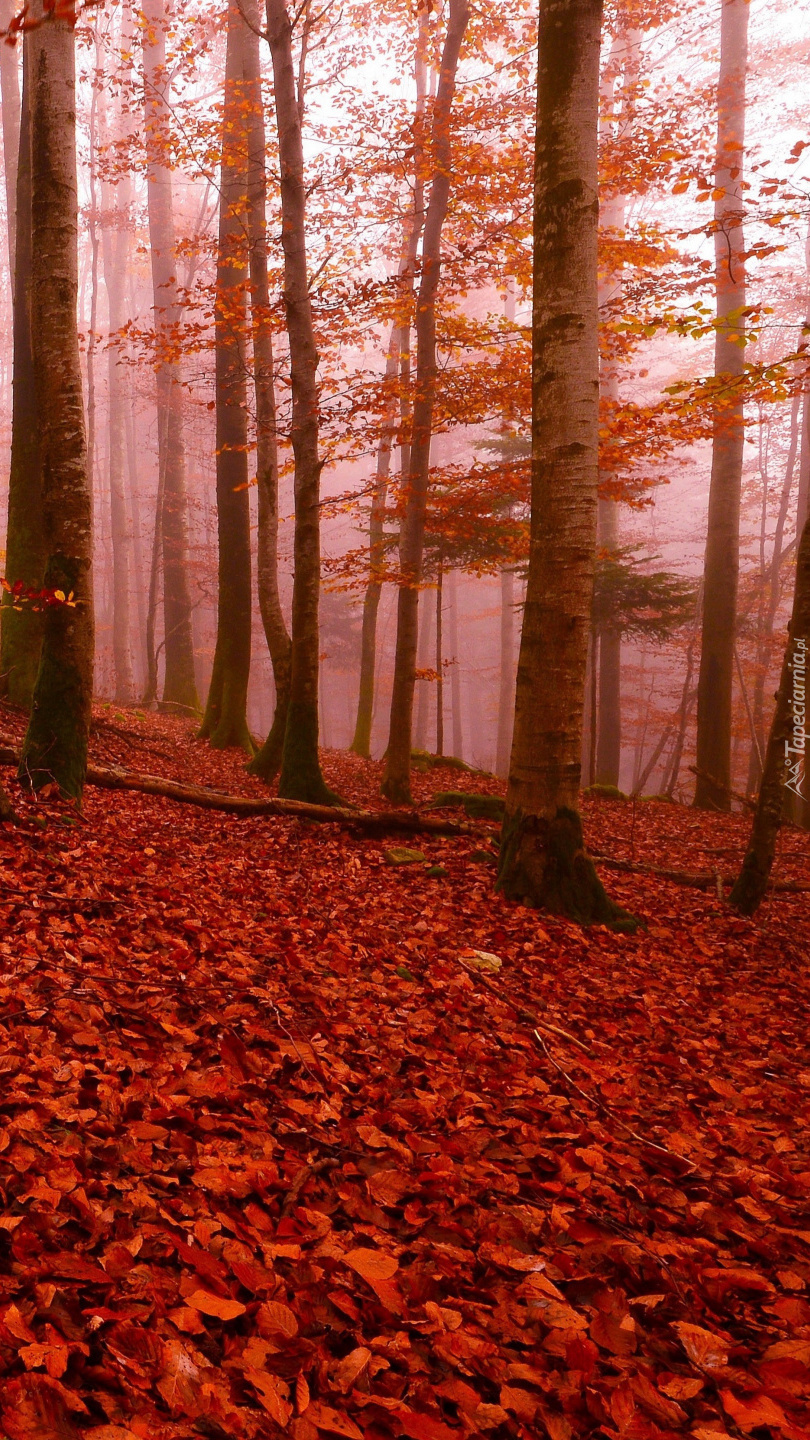 Edytor tapety: Czerwone liście pod drzewami