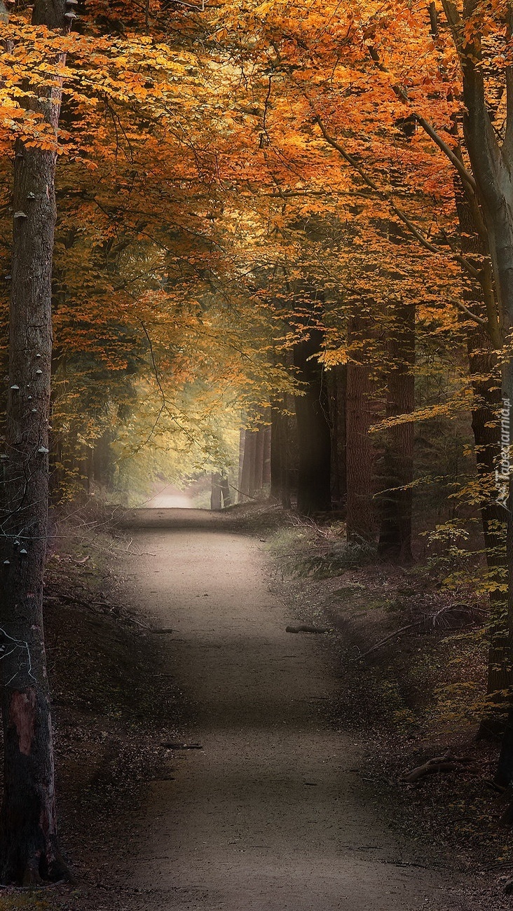 Edytor tapety: Droga wśród jesiennych drzew