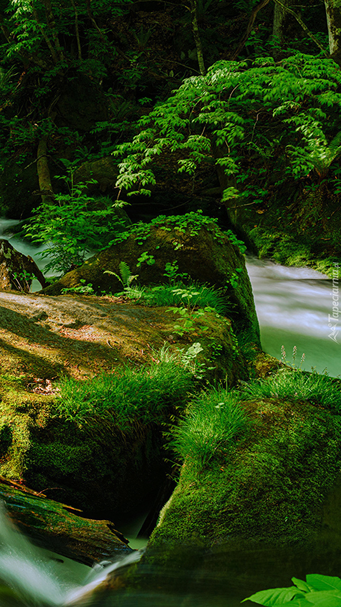 Edytor tapety: Kamienie pokryte mchem nad rzeką