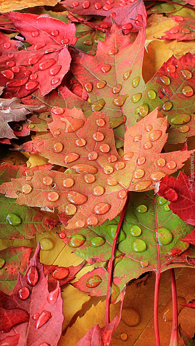 Edytor tapety: Krople wody na liściach klonu