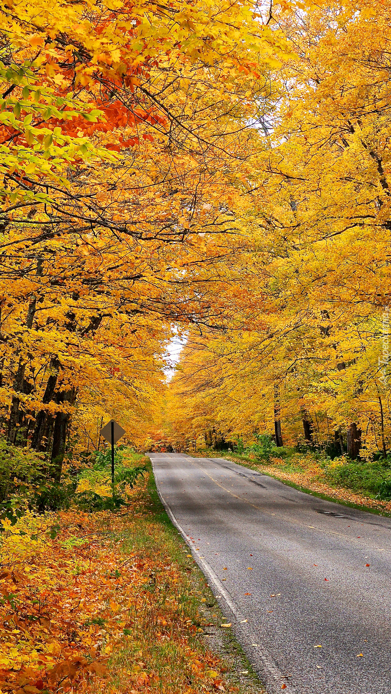Edytor tapety: Droga pośród jesiennych drzew