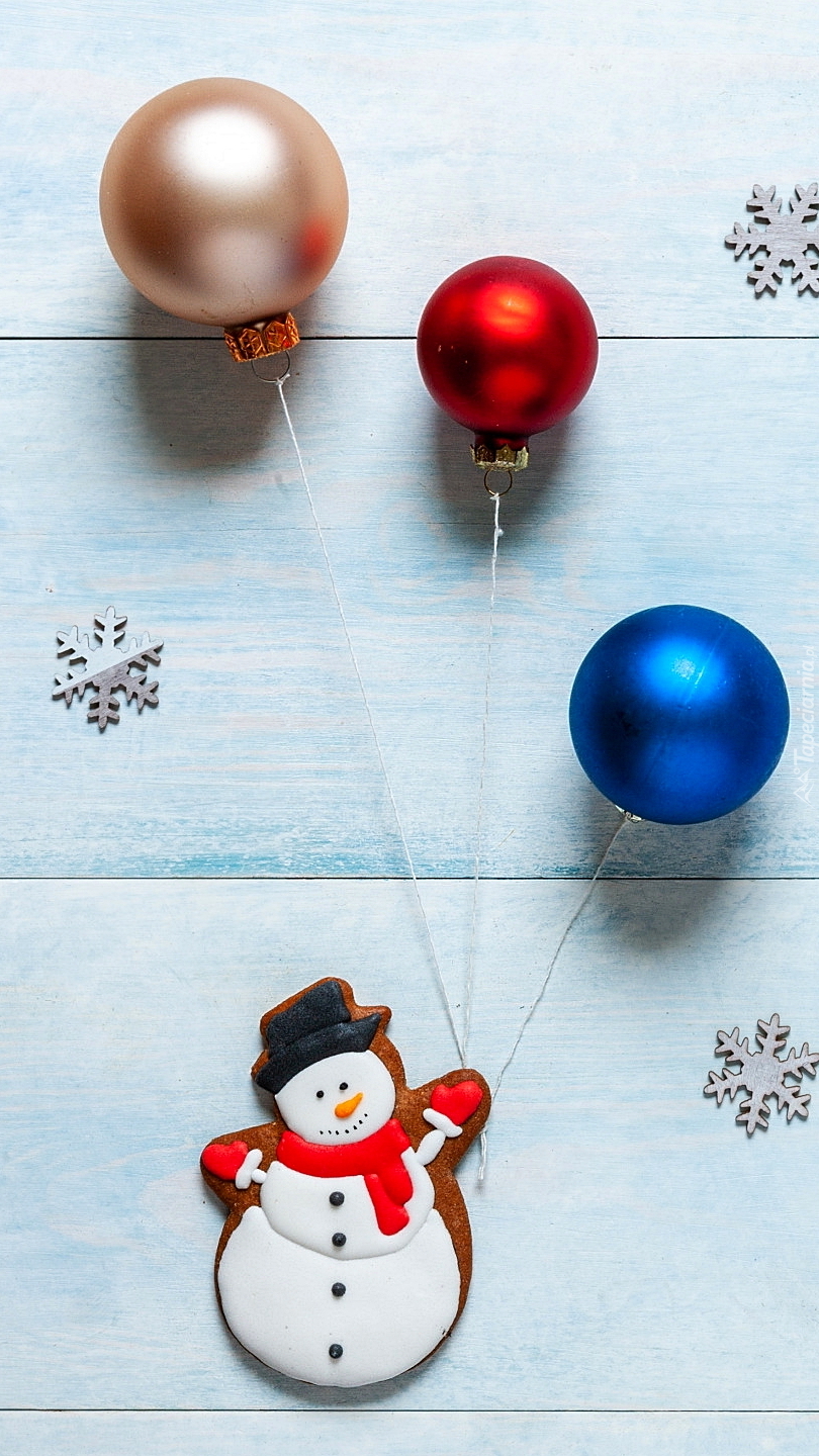 Edytor tapety: Piernikowy bałwanek z bombkami