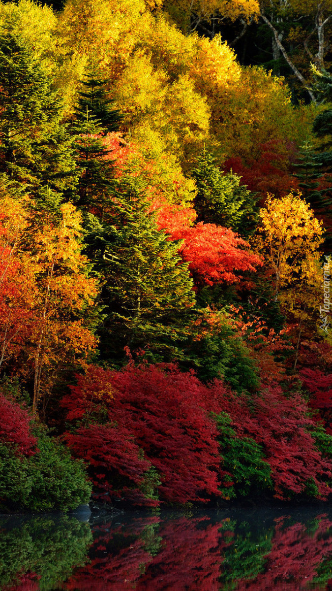 Edytor tapety: Kolorowe drzewa i krzewy nad rzeką