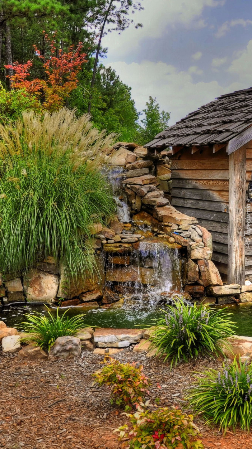 Edytor tapety: Oczko wodne w ogrodzie