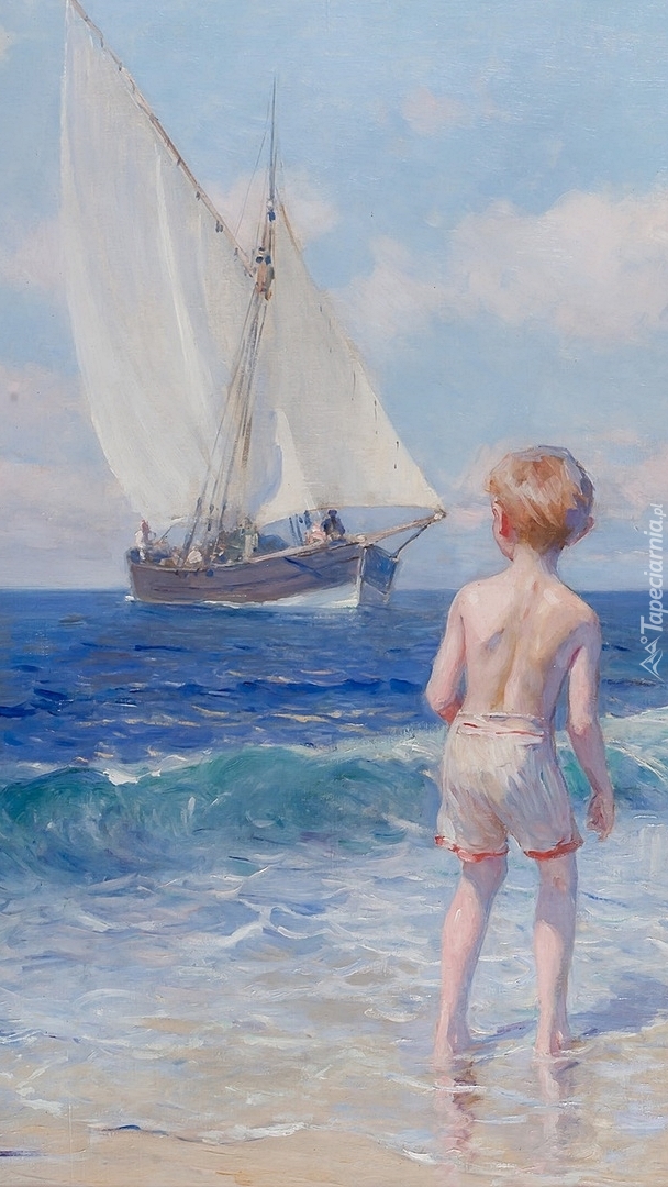Edytor tapety: Chłopiec zapatrzony na żaglówkę