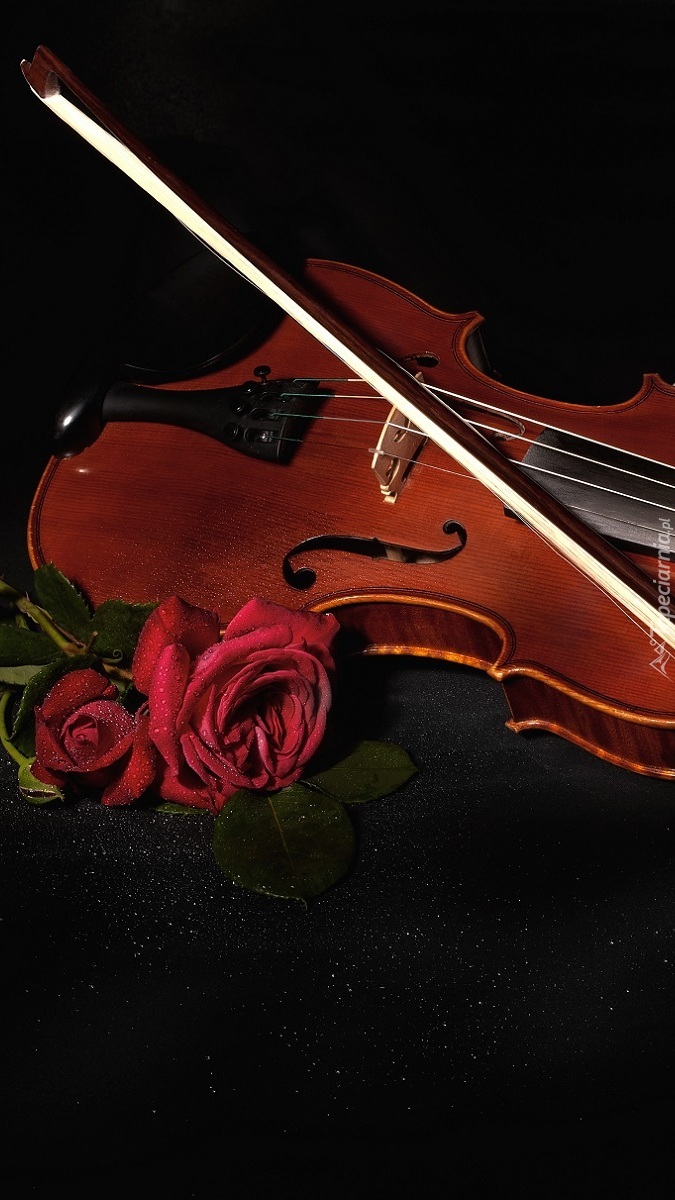 Edytor tapety: Skrzypce obok czerwonych róż
