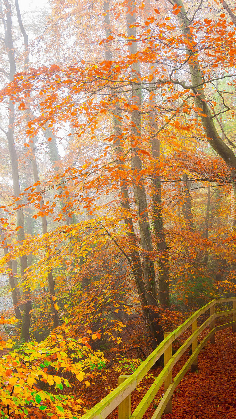 Edytor tapety: Drzewa obok ogrodzenia w lesie