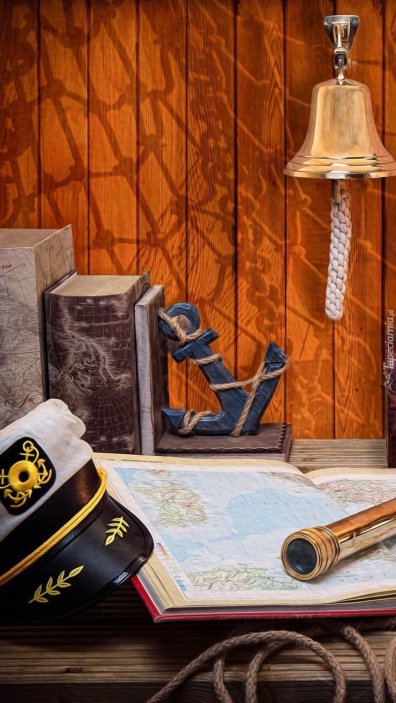 Edytor tapety: Czapka marynarza obok atlasu