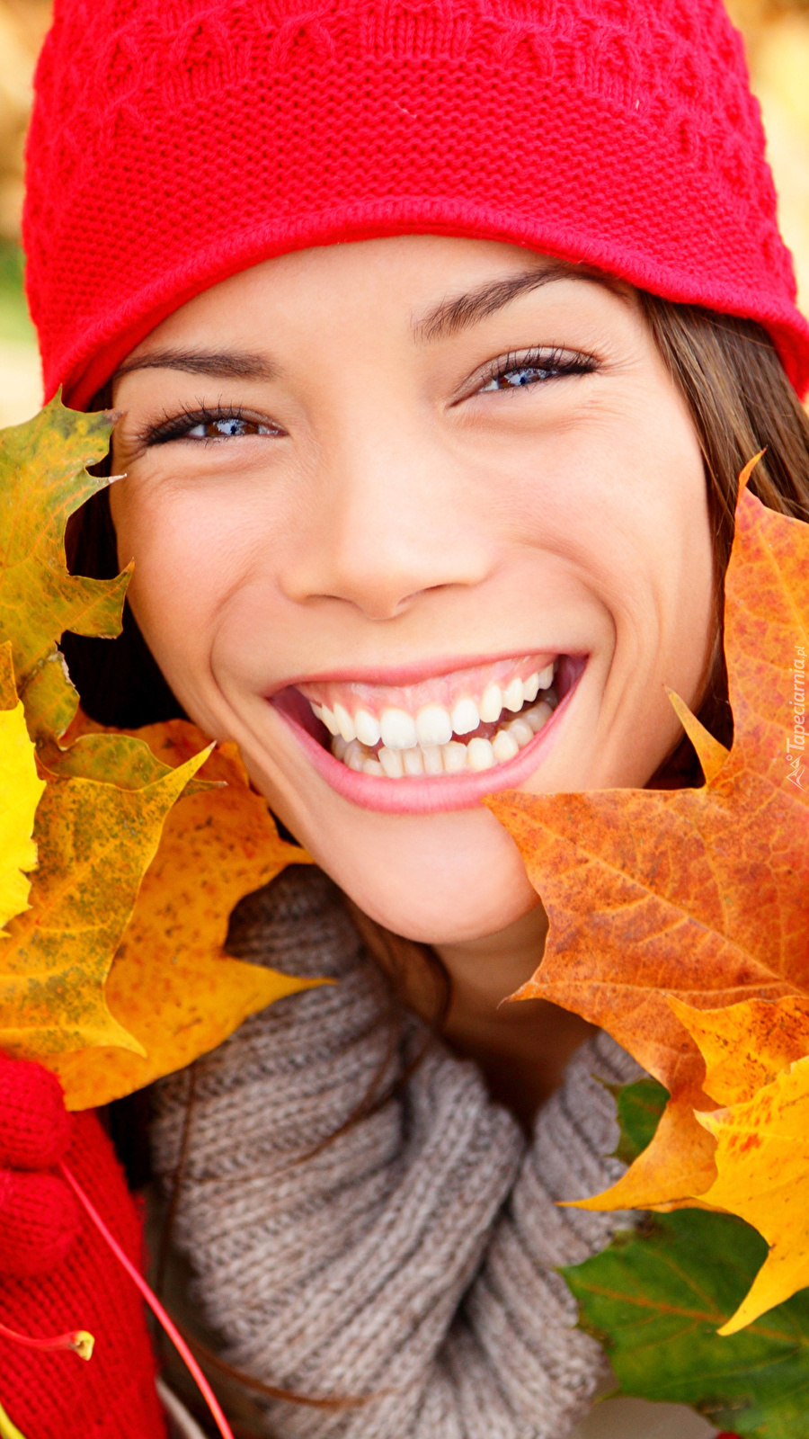 Edytor tapety: Uśmiechnięta dziewczyna w czerwonej czapce
