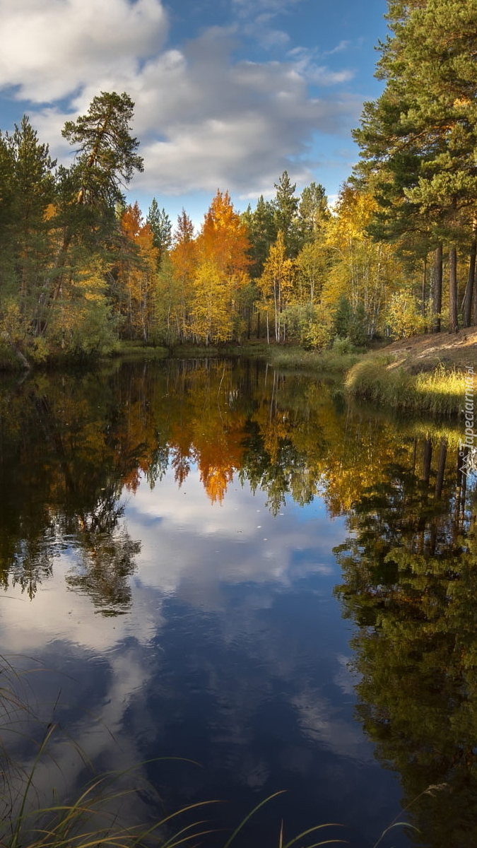Edytor tapety: Słoneczny dzień nad rzeką w lesie