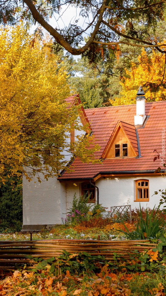 Edytor tapety: Biały dom z czerwonymi dachówkami