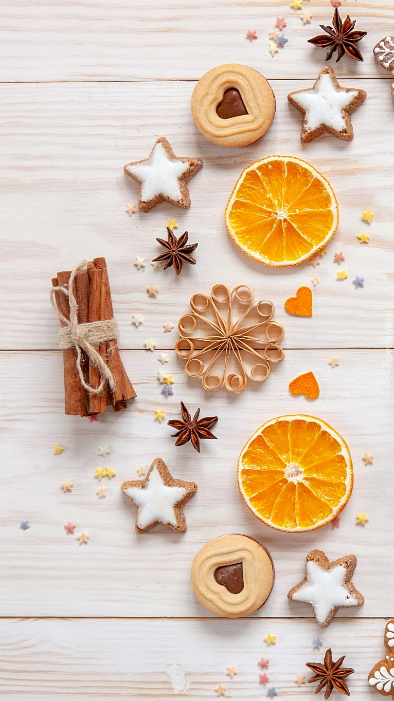 Edytor tapety: Świąteczne ciasteczka i plasterki pomarańczy