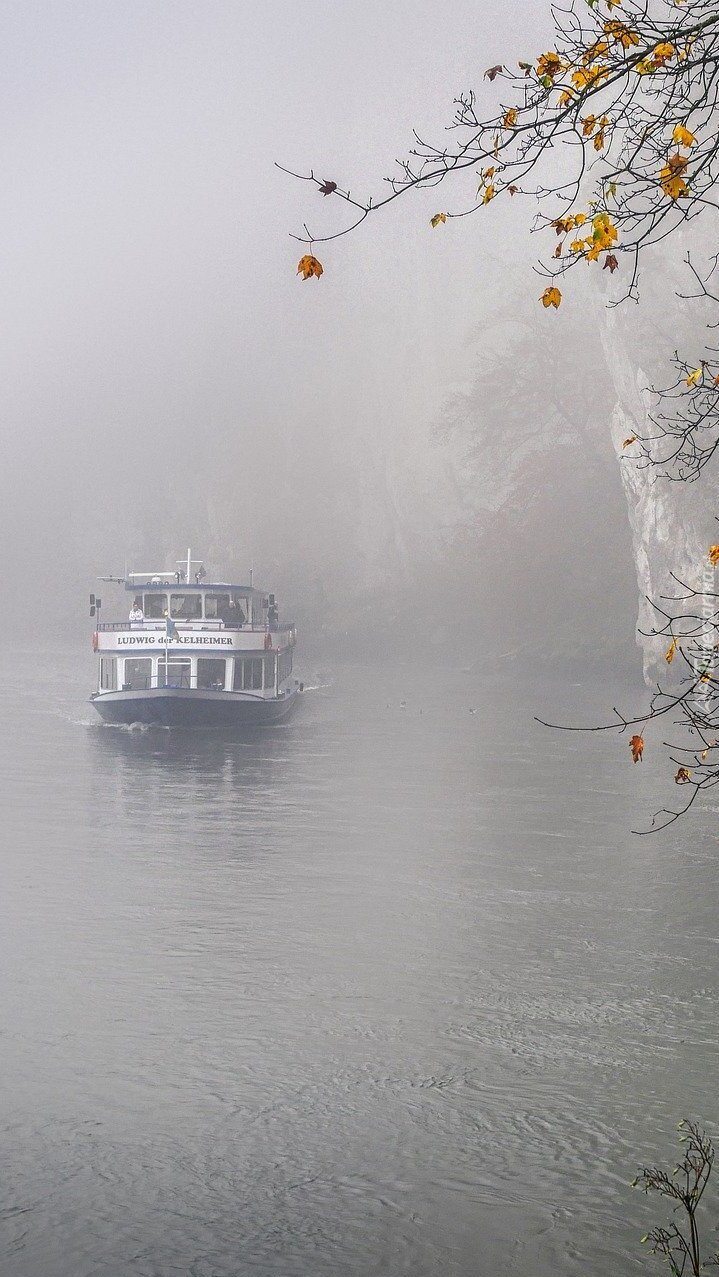 Edytor tapety: Statek wycieczkowy na zamglonym jeziorze