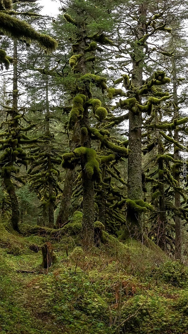 Edytor tapety: Omszałe drzewa w lesie