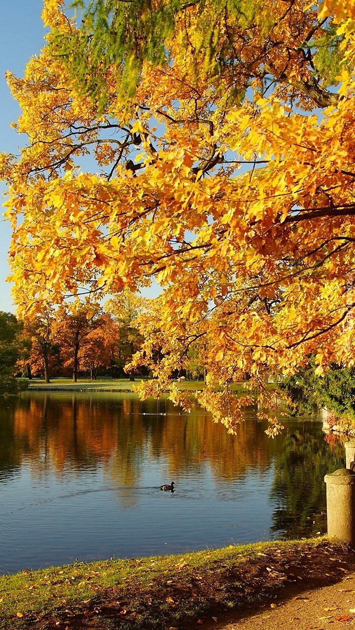Edytor tapety: Jesienne drzewo nad stawem