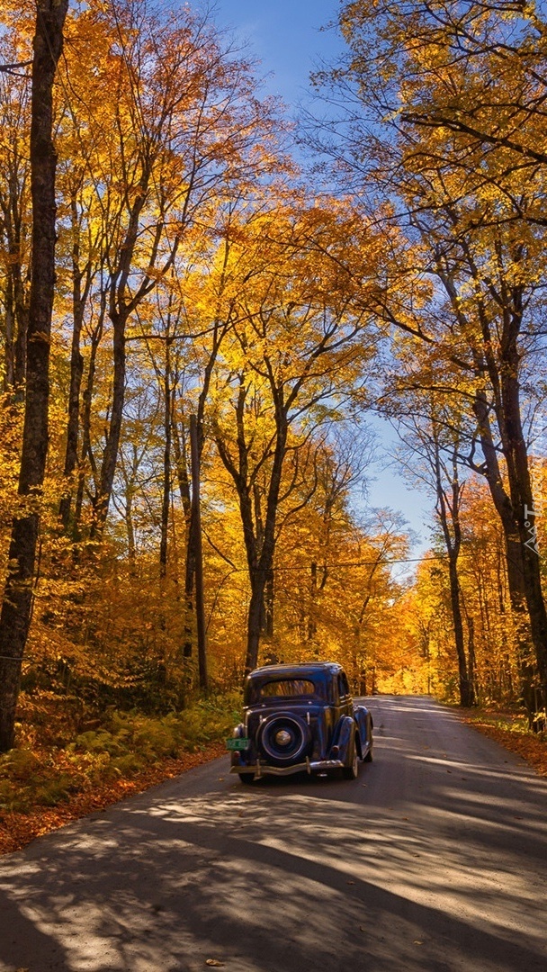 Edytor tapety: Zabytkowy samochód na leśnej drodze