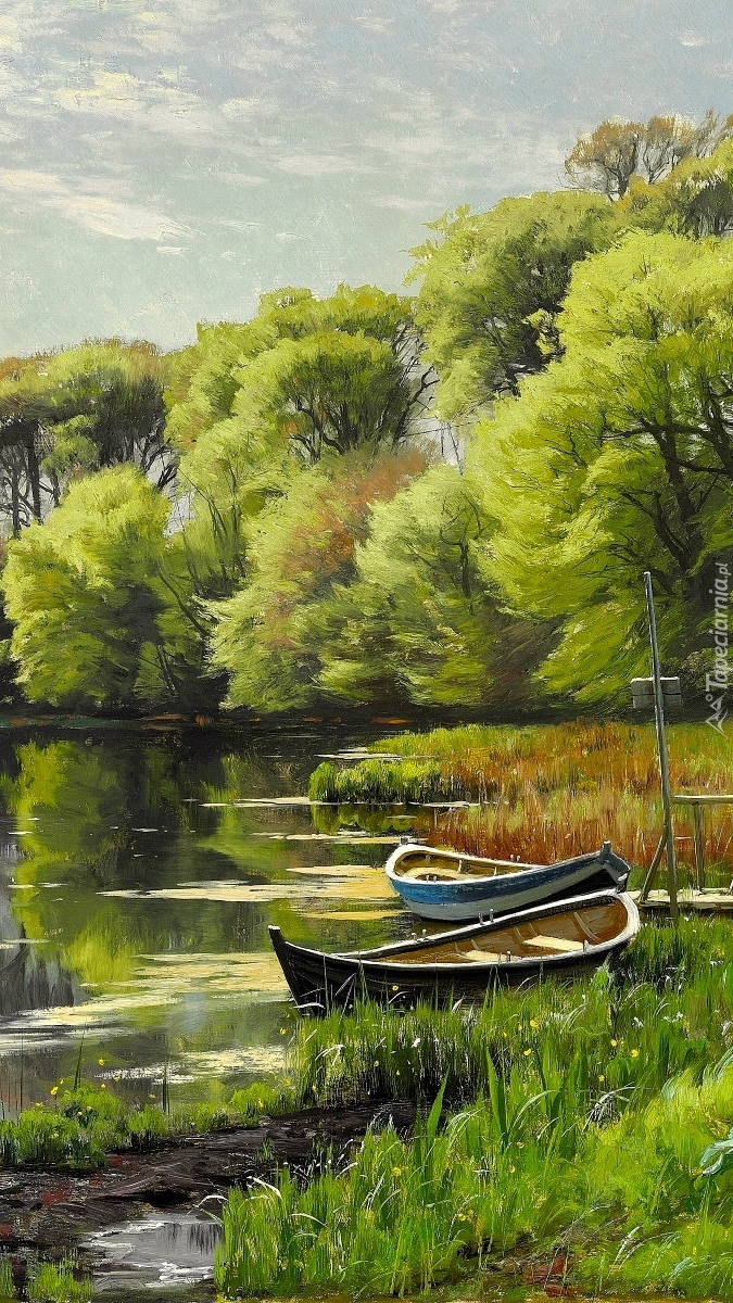 Edytor tapety: Łódki w szuwarach na rzece